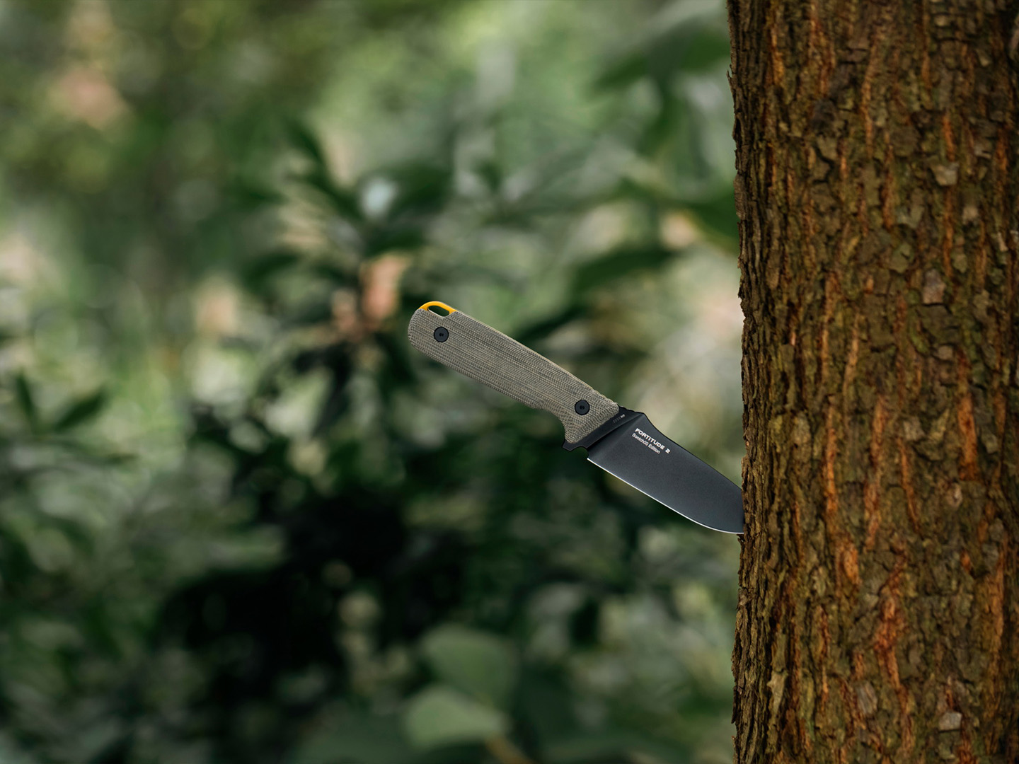 Le Fortitude 2 est un couteau à lame fixe doté d'une lame Full Tang en acier poudre CPM-S35VN de 3,7mm d'épaisseur, avec un revêtement en Titane Noir Mat. Il est équipé d'un manche en Micarta OD Vert et G10 Jaune pour une meilleure prise en main. Pour un port pratique et sécurisé, il comprend un étui en cuir double épaisseur qui peut être porté horizontalement ou verticalement à la ceinture.