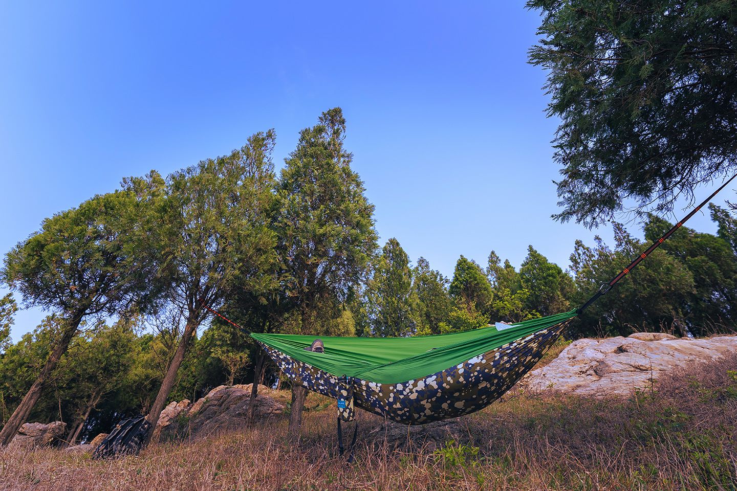 Les hamacs de la série Sunbreeze sont écologiques, légers et faciles à installer, peu importe où vous mènera votre prochaine aventure. Le corps de ce hamac est fabriqué en tissu nylon 210T 100% recyclé, produit à partir de déchets plastiques océaniques, ce qui contribue à sa durabilité sans compromettre le confort et la qualité.