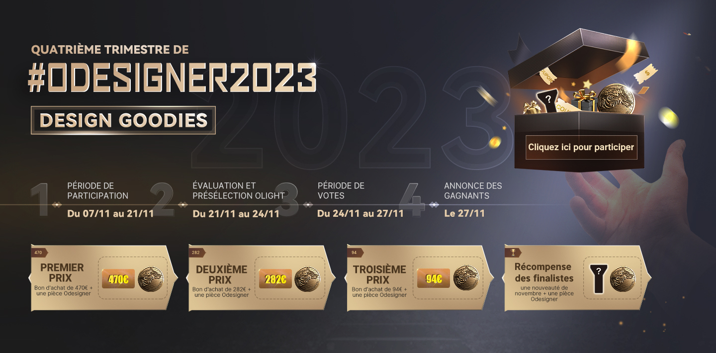Le concours #Odesigner a été, encore une fois, un voyage incroyable, réunissant les esprits créatifs du monde entier. Nous avons vu d'innombrables designs extraordinaires sur les lampes de poche et les Otools, et maintenant, le nouvel an s'approchant à grands pas, nous sommes impatients de voir vos merveilleuses idées prendre vie dans la catégorie goodies. Nous invitons donc tous nos O-Fans à prendre part à la création d'un tout nouveau cadeau surprise. N'hésitez pas à choisir un ou plusieurs thèmes :