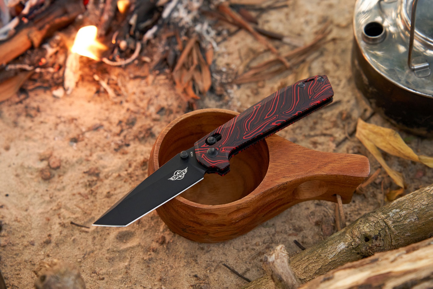 Olight Rubato Noir Marbré Rouge - Premier Couteau Pliant Olight Avec Un Rail-lock