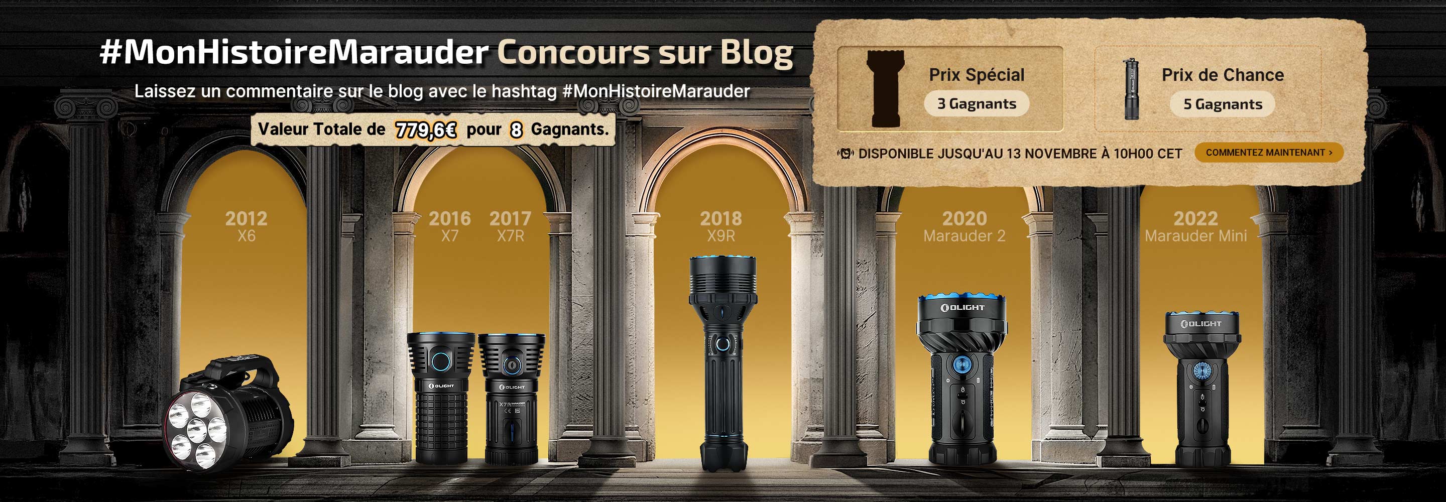 Ce n’est pas juste un concours — c’est une célébration de nos utilisateurs les plus fidèles. Une équipe Olight examinera chaque participation, à la recherche des histoires qui incarnent le mieux l’esprit Marauder : Puissance, Résistance et Fiabilité. Les votes de la communauté sur vos commentaires joueront également un rôle important !