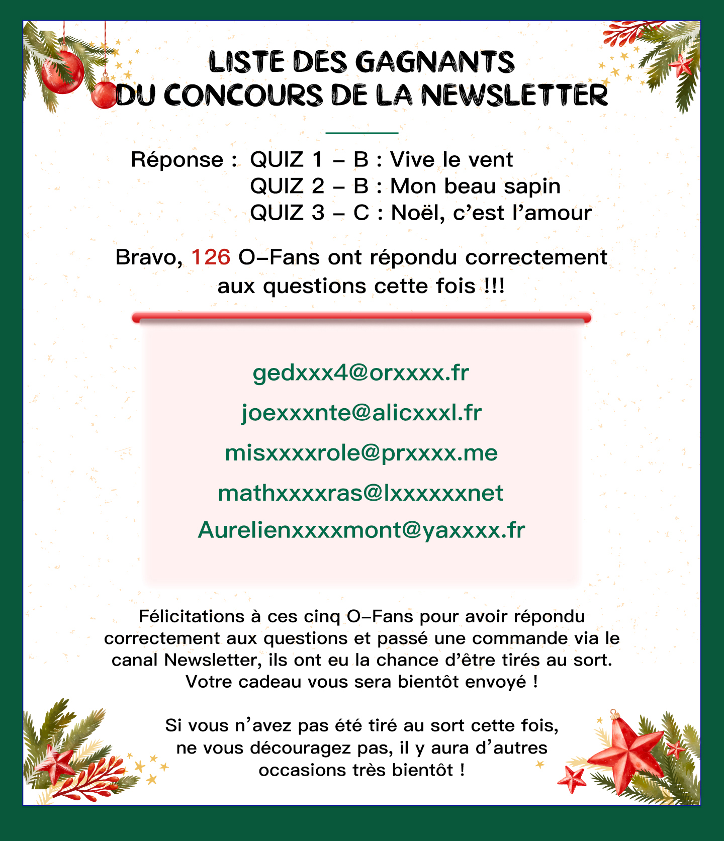 de décembre pour nos abonnés à la Newsletter.