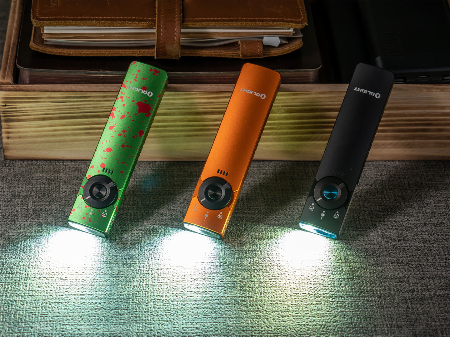 La Arkfeld Pro est une lampe de poche EDC qui dispose de trois sources lumineuses différentes : lumière blanche, laser vert et lumière UV. Elle est équipée d'une LED haute performance pouvant atteindre une luminosité maximale de 1300 lumens. Avec l'ajout simultané d'un module laser vert de 520nm et d'une lumière UV, ce produit élargit considérablement sa gamme d'applications. Basculer entre les trois modes d'éclairage est un jeu d'enfant grâce au sélecteur circulaire, qui permet aux utilisateurs de switcher sans effort entre les trois modes d'éclairage d'un simple mouvement. Le contrôle de l'autonomie de la batterie est effectué facilement avec l’indicateur lumineux intuitif. De plus, le talon de la lampe est équipé d'un module de charge magnétique qui prend en charge le chargeur MCC. La Arkfeld Pro peut facilement se fixer sur des surfaces métalliques, fournissant un éclairage partout où vous en avez besoin.