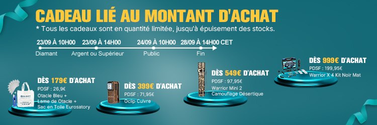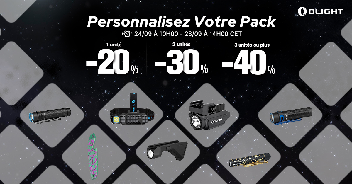 Il est également important de rappeler que les produits proposés en pack lors de cet événement permettent souvent de bénéficier de rabais encore plus importants. Pour quelques euros supplémentaires, de nombreux packs vous permettent d'ajouter des articles Olight supplémentaires à votre collection !