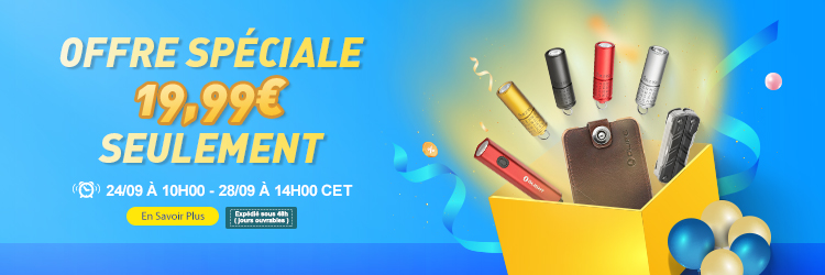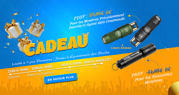 Pour les fidèles O-Fans enregistrés et ayant passé une commande avant le 19 septembre 2024 à 10h00 (heure française) , nous offrirons les iMini 2 en coloris Noir/OD Vert (coloris aléatoire). Vous êtes le centre de notre univers, le cœur et l'âme d'Olight, et ce cadeau incarne notre gratitude éternelle.(remarque : les membres ayant passé deux commandes ou plus mais n'ayant reçu qu'un cadeau de connexion ne seront pas éligibles pour ce cadeau)