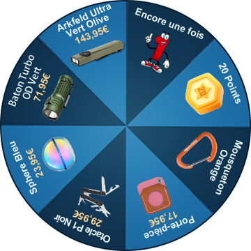 La Roue de la Chance fait son grand retour ! Faites tourner la roue pour avoir une chance de gagner des prix exceptionnels. Le plus grand prix est la Arkfeld Ultra OD Vert, d'une valeur de 143,95€, parmi les nouveautés Olight de septembre.