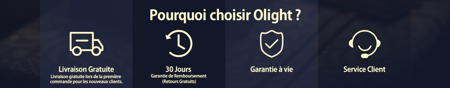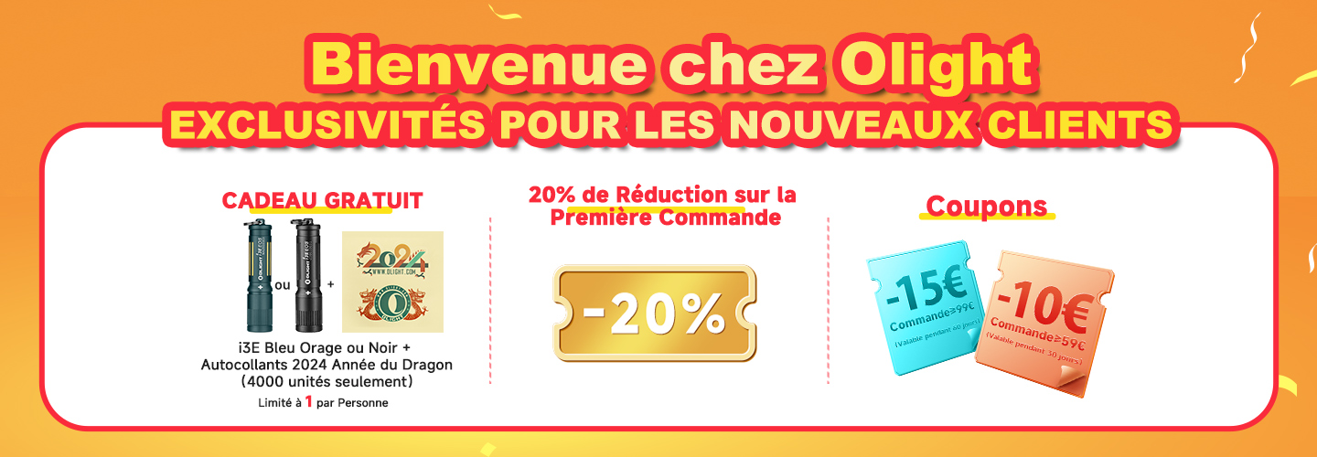 Livraison gratuite lors de la première commande pour les nouveaux clients. Inscrivez-vous ici : https://fr.olight.com/login pour commander votre 1ère lampe et bénéficiez d'avantages dans notre O-fan-Club. Découvrez notre programme de fidélité >>