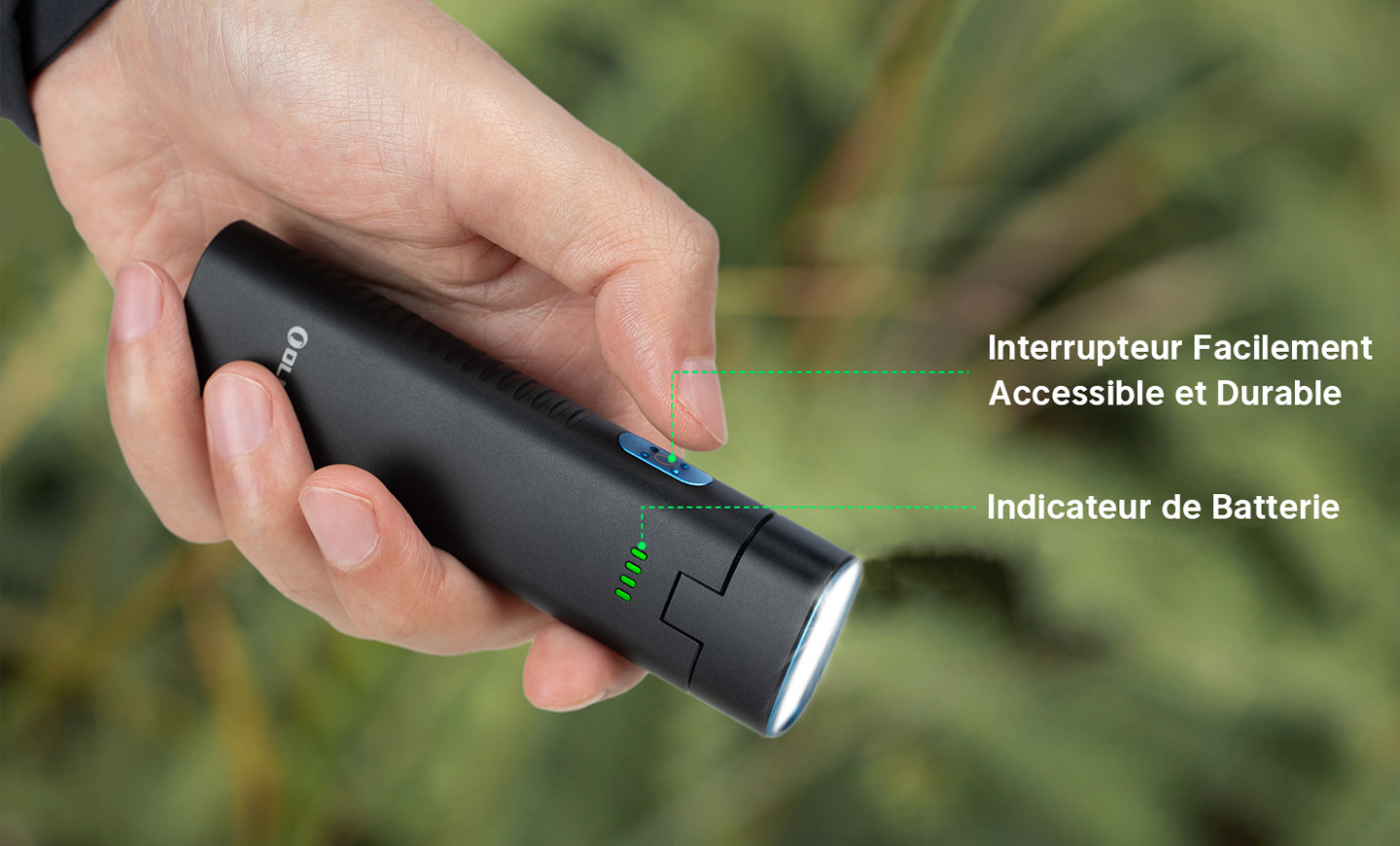 La Arkflex dispose d'un indicateur de batterie à cinq niveaux qui peut afficher clairement la puissance en temps réel de la lampe de poche. Elle bénéficie également d’une longue autonomie puisqu’en mode Luciole, elle peut être utilisée en continu jusqu'à 10 jours après avoir été complètement chargée. Rechargeable via le câble de chargement magnétique MCC-1A, qui est facile à utiliser et rapide, vous n'avez plus à vous soucier de tomber à court de batterie pour votre lampe favorite.