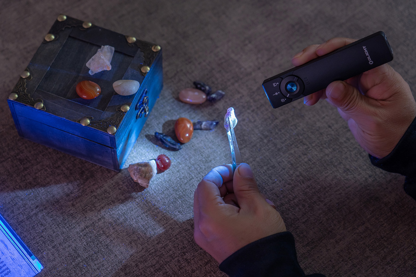 4. Identification des billets de banque et détection de la fluorescence : Les sources de lumière ultraviolette (UV) sont très utiles pour l'authentification des billets de banque et la détection de la fluorescence. La fonction UV de la Arkfeld Pro peut vous aider à vérifier l'authenticité des billets de banque, à détecter les matériaux et minerais fluorescents et à trouver les marqueurs cachés de certaines substances. Cette fonction est très utile pour les commerçants, les collectionneurs et les chercheurs.