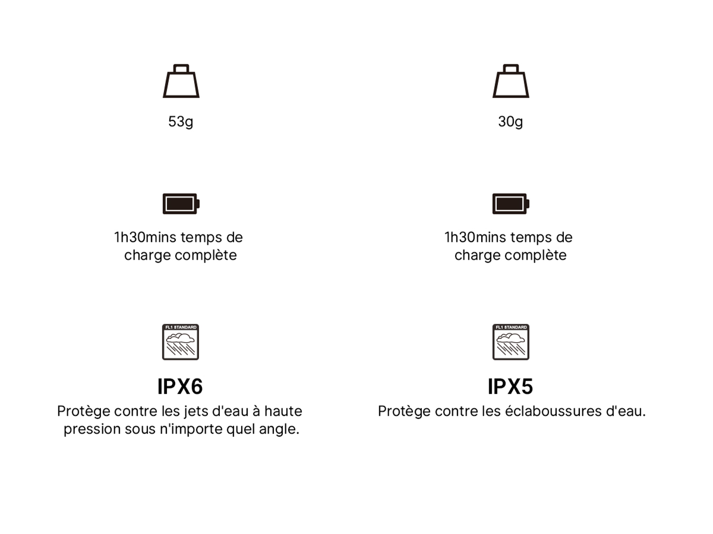 Avec une batterie de grande capacité de 580mAh, la Oclip Pro dispose d’une autonomie impressionnante pouvant aller jusqu'à 144 heures. Son couvercle anti-poussière et son étanchéité normée IPX6 garantissent sa durabilité et sa résistance à l'eau.
