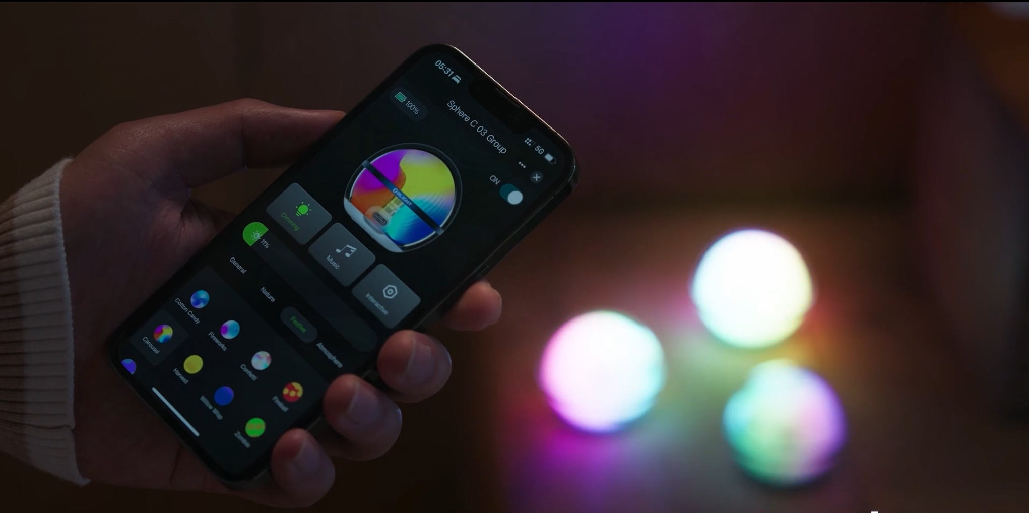 Pour un apéro entre amis, une fête improvisée ou une soirée jeux de société, la Sphere devient un élément central de votre décoration… et de votre playlist lumineuse ! Elle peut même suivre la musique, créant ainsi un véritable show lumineux synchronisé avec vos morceaux préférés.