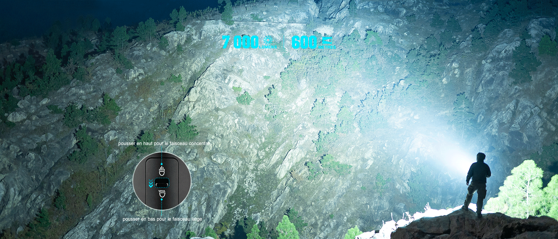 Par exemple, une lampe torche avec une haute luminosité (lumens élevés) et un faisceau large (intensité lumineuse faible) est parfaite pour des recherches en forêt ou en extérieur sur de vastes zones.