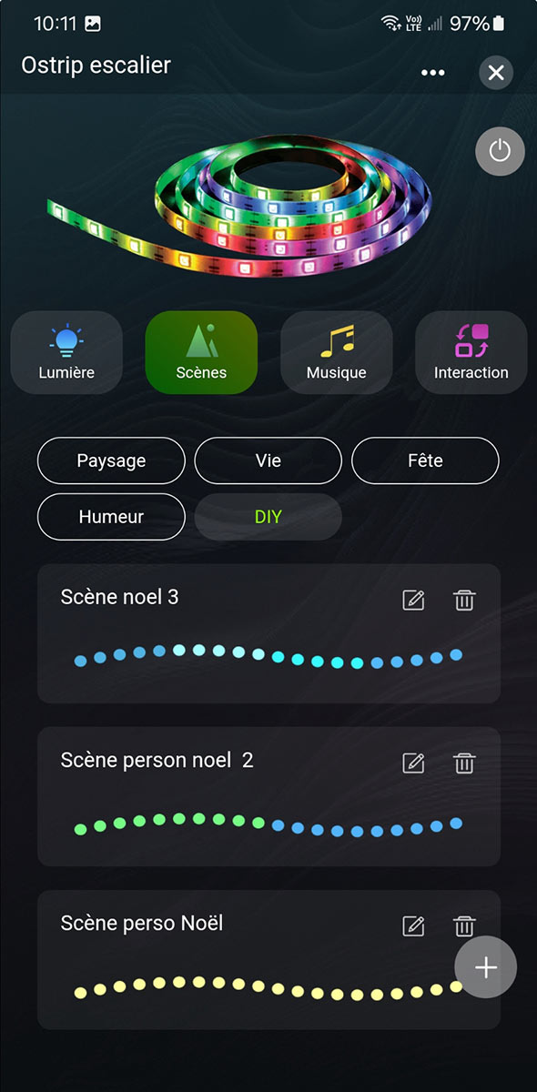 L’application « Olight App » va vous permettre de gérer l’ensemble de vos produits connectés ; cela va des Obulbs plus, Pro et Pro S en passant par les Sphères, le Obound, le Motion Sensor et bien entendu le Ostrip. De celle-ci vous avez la possibilité, en fonction du produit, de créer des groupes, d’exécuter des tâches simple en un seul clic et de créer des automatisations plus complexe.