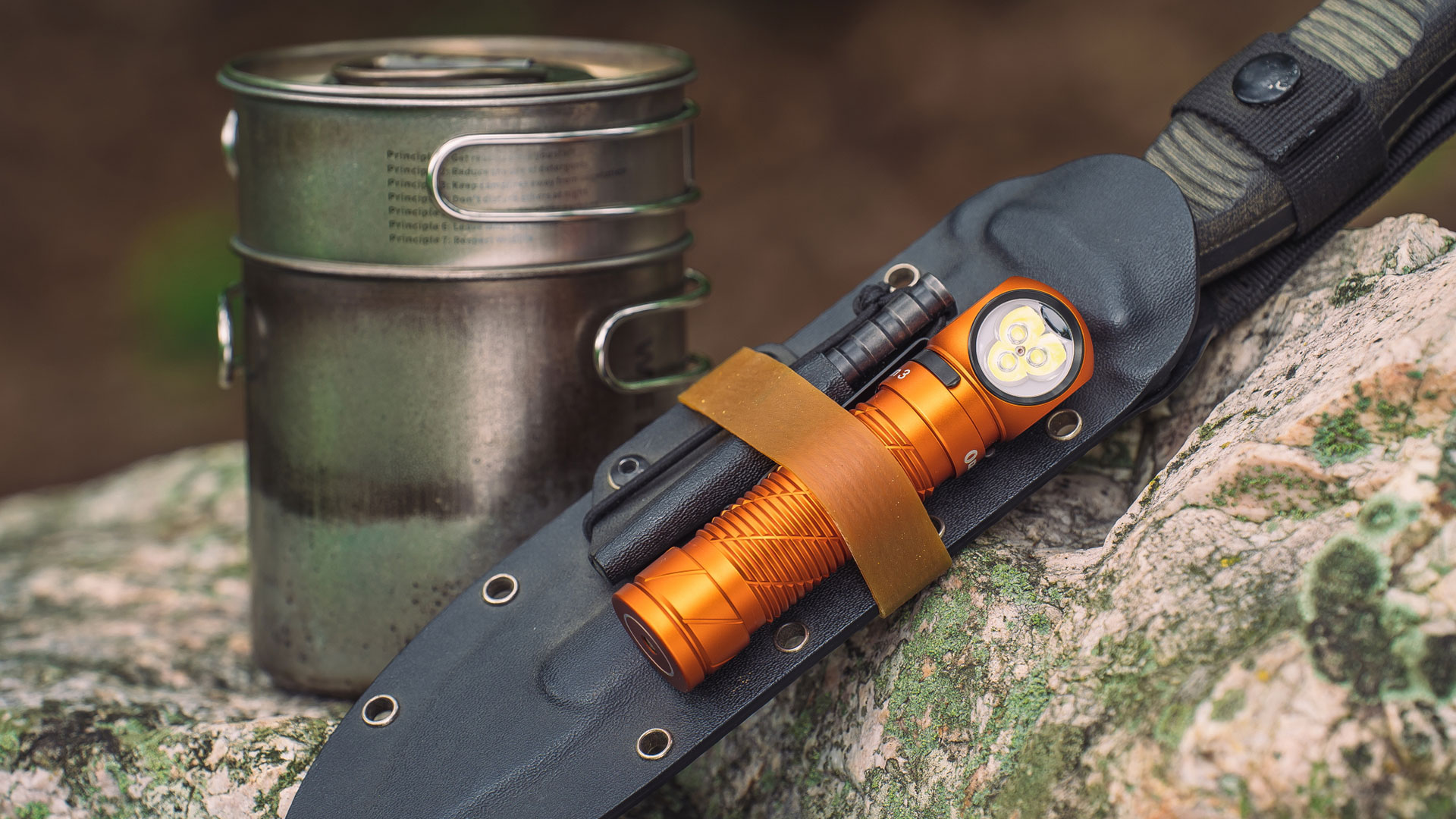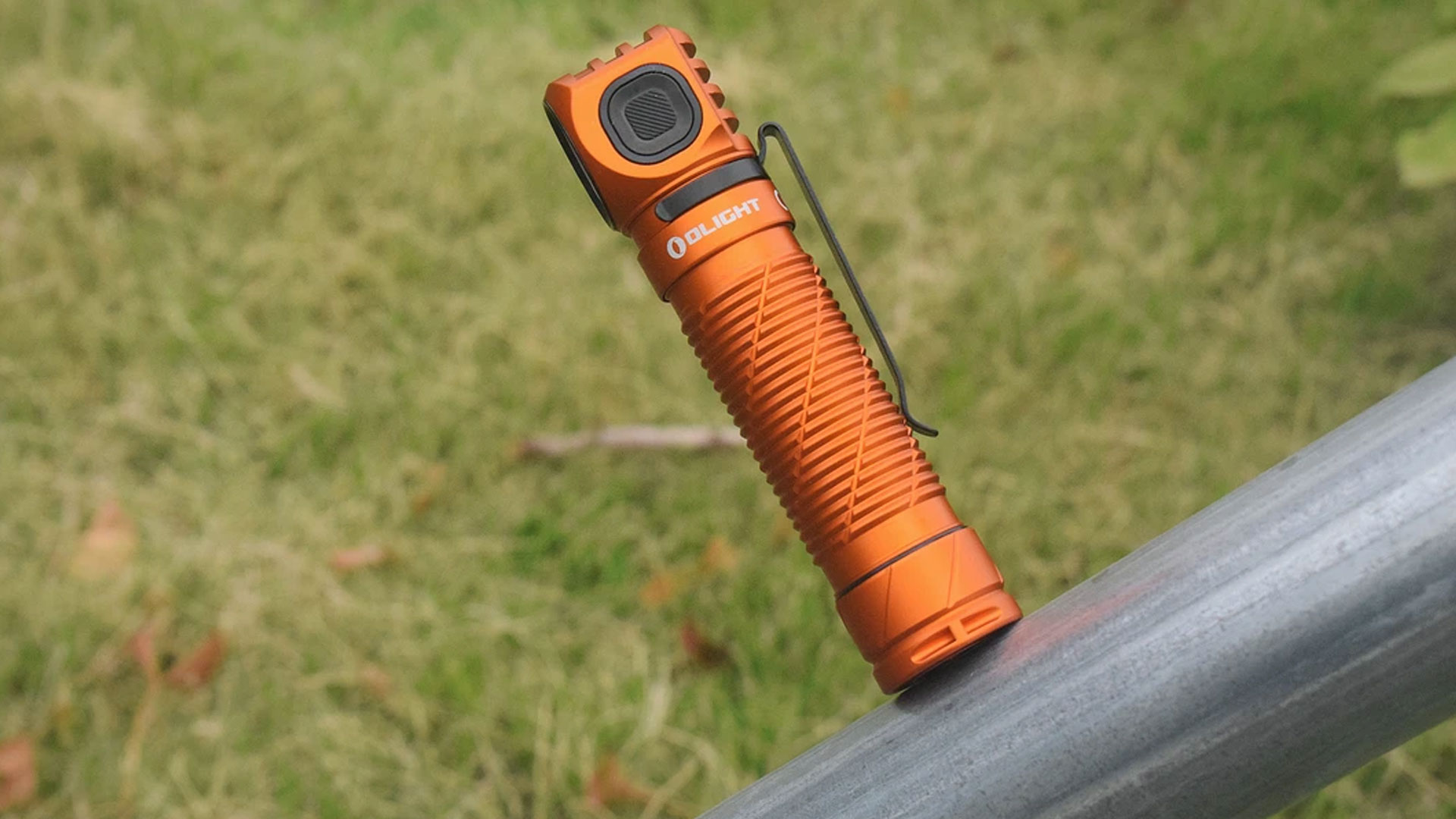 La tête, avec ses dissipateurs thermiques et le motif de moletage croisé qui s'étend jusqu’au capuchon arrière, rappelle fortement le design de la Perun 2, ce qui permettra aux utilisateurs des anciens modèles de rester en terrain connu. En termes de design, Olight, joue ici clairement la carte de la continuité.
