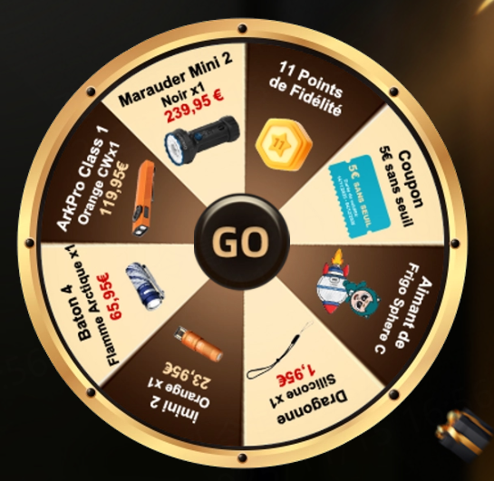 Connectez-vous quotidiennement à votre compte pour faire tourner notre Roue de la Chance et tenter de remporter des prix exceptionnels. De plus, pour chaque commande de plus de 100€, vous bénéficierez d'une chance supplémentaire (une fois par jour). Faites tourner la roue et tentez de gagner une Marauder Mini 2 Noire d’une valeur de 239,95€ ! Ne laissez pas passer cette occasion excitante !