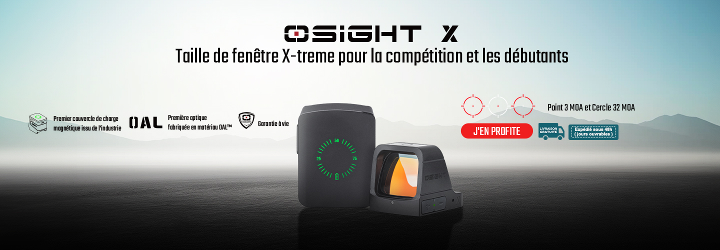 - Empreinte la plus courante : En adoptant le standard industriel de facto (empreinte Réflexe Miniature Renforcé, ou 407c/507c), l'Osight C s'intègre versatilement à de nombreux pistolets compacts et de taille standard. Les supports Picatinny Osight élargissent encore les possibilités avec des options haute et basse compatibles avec la plupart des carabines. Fonction capteur de mouvement : Le capteur de mouvement active l'Osight C au moindre déplacement et l'éteint automatiquement après 3 minutes d'inactivité pour préserver la batterie.