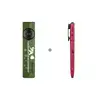 - Quatre sources lumineuses : Lumière blanche sur clip, lumière rouge sur clip, lumière sur pointe et pointeur laser vert.