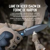 Lame en acier 154 CM et en forme de harpon : ce matériau présente une excellente résistance à l'usure et à la corrosion, durabilité élevée et bonne longévité des arêtes. Et avec une pointe et un tranchant fins et de haute qualité, le Beagle est parfait pour les tâches de coupe et de perçage.