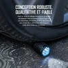Qualité et Fiabilité : Avec un corps en alliage d'aluminium de qualité aérospatiale avec anodisation dure (Type III), un design ergonomique et antidérapant, son étanchéité est certifiée IPX8 et elle résiste aux chutes de 2 mètres.